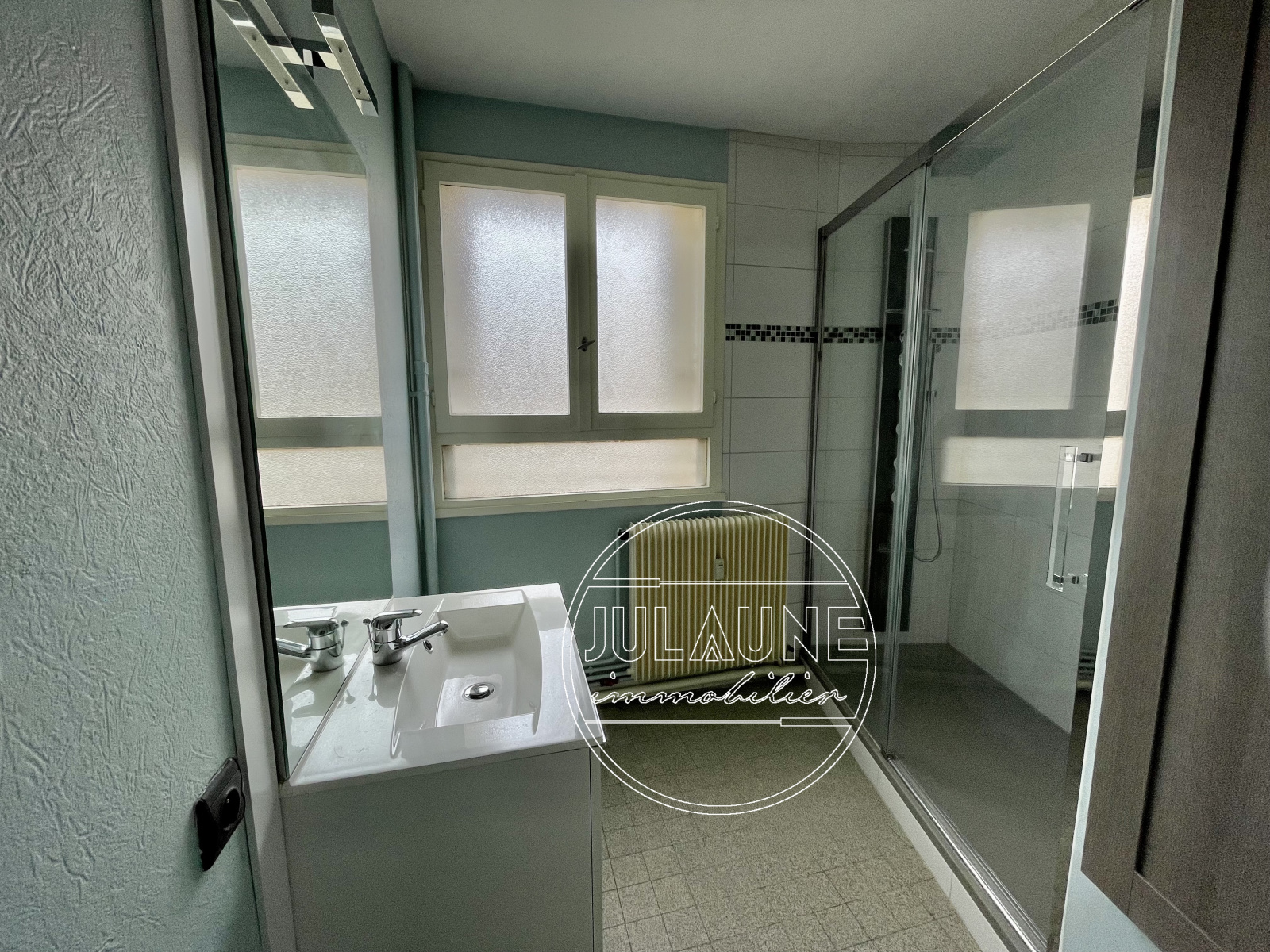 L’appartement dispose de deux chambres confortables, idéales pour une famille ou pour aménager un bureau à domicile. La salle d’eau, également rénovée, est fonctionnelle et moderne.
